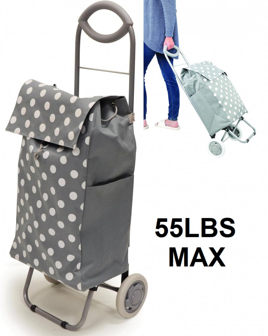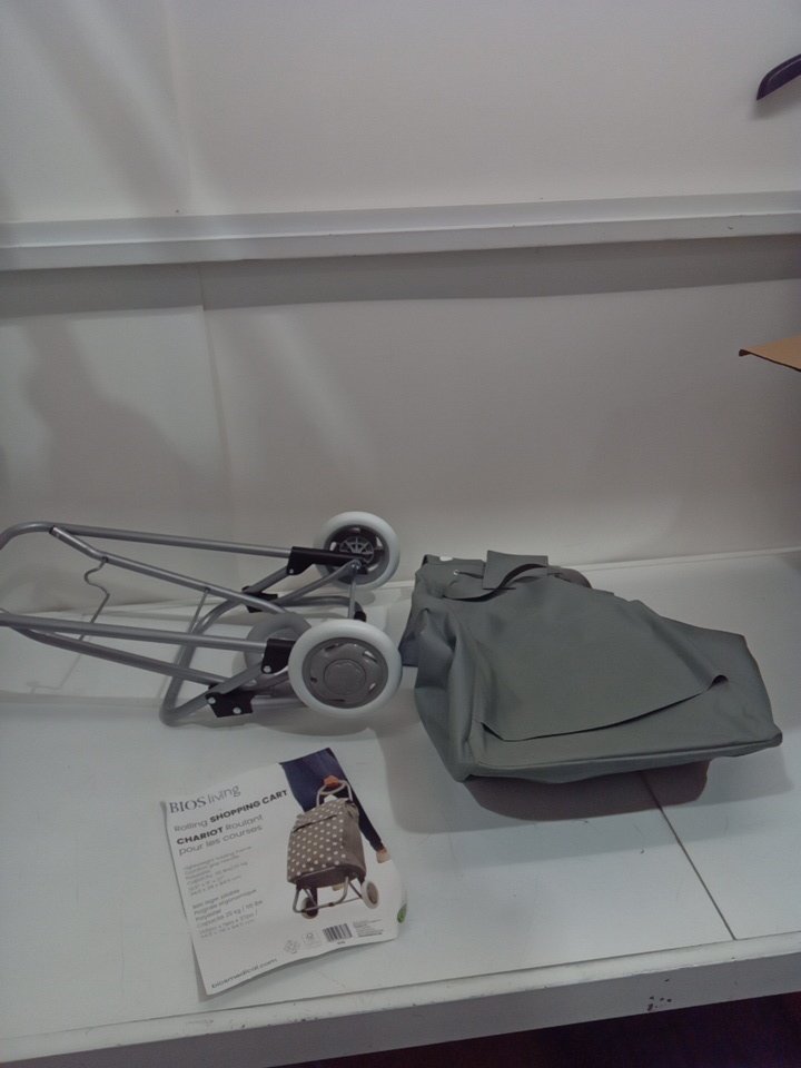 BIOS LIVING foldable Rolling Shopping Cart - 55LB MAX - 38" - GREY/WHITE