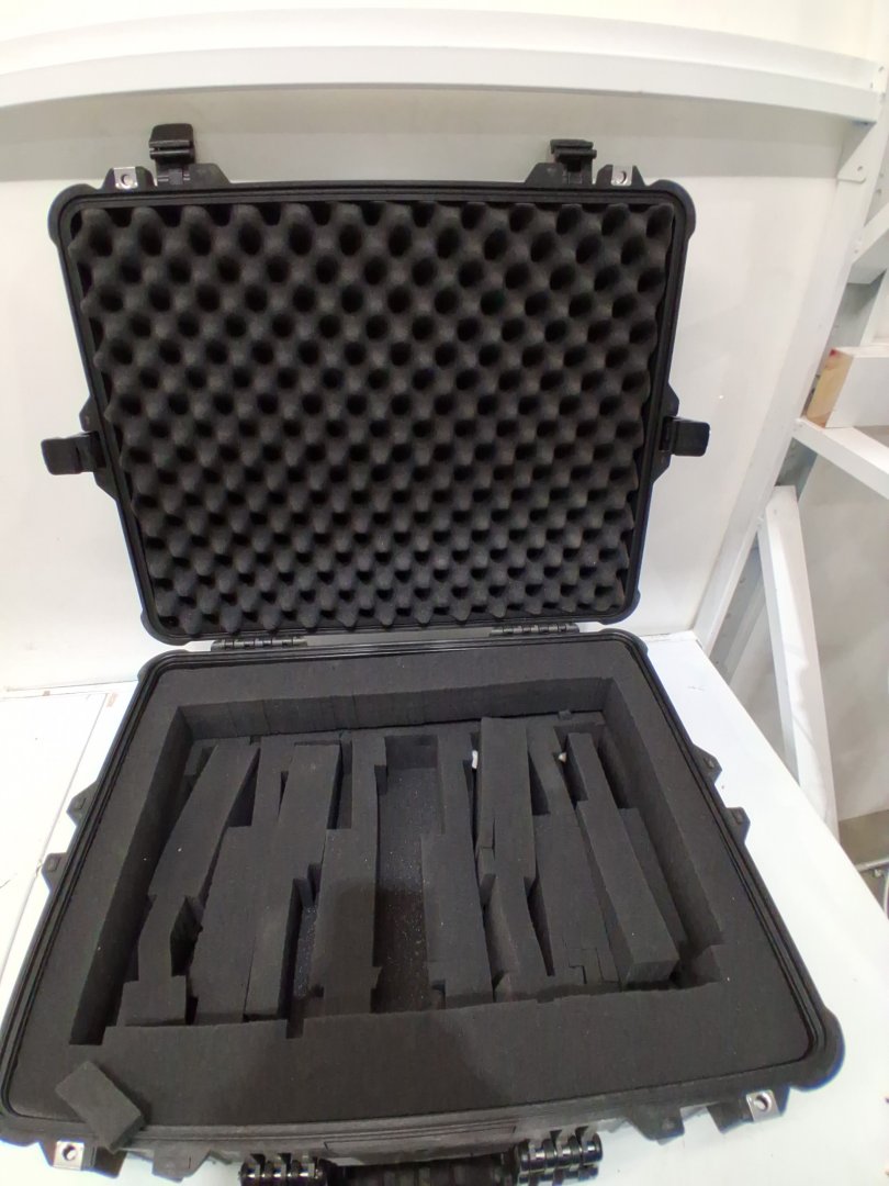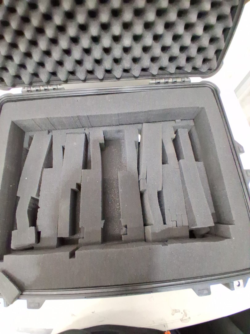 The case appears to have scuffs, scratches and marks due to prior use. The foam inserts have been cut and may need to be replaced.