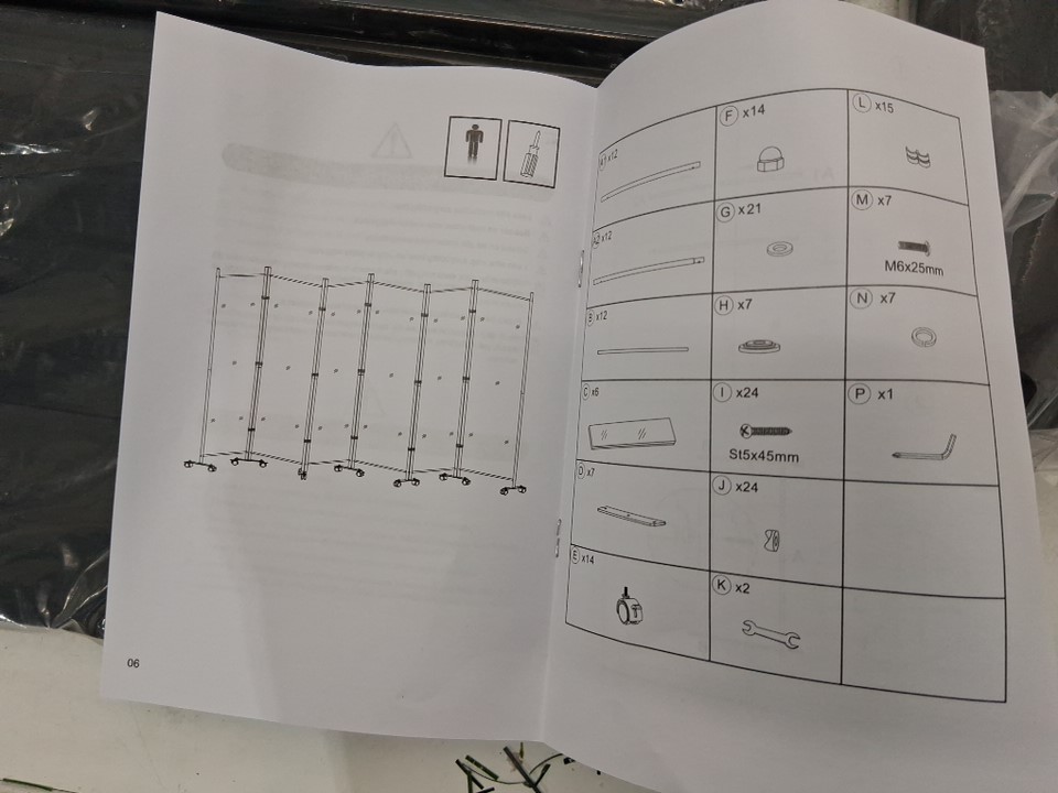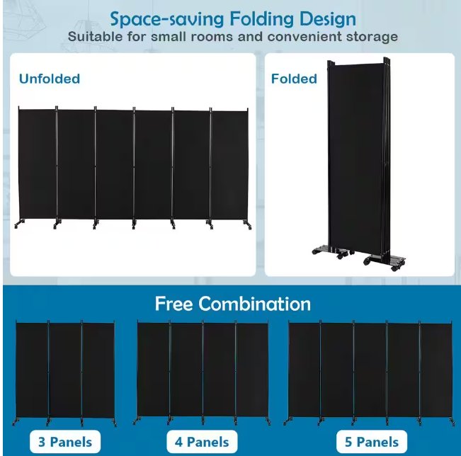 costway 6 panel folding room divider on wheels - 6ft - black (model: jv10725bk)