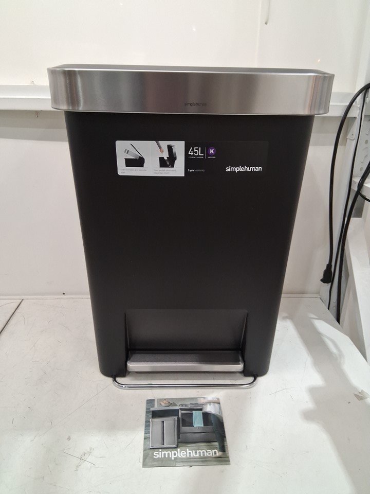 simplehuman Rectangular Kitchen Step Trash Can with Soft-Close Lid - 45l - grey