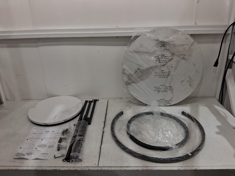 2pc aboxoo Round Nesting Coffee Table - 23.6" X 17.7"/ 15.7" x 15.7" - white marble/black - (MODEL:HM2388)
