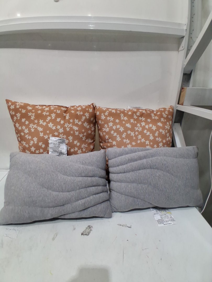 4 ASSORTED THROW PILLOWS - Burnt orange/grey