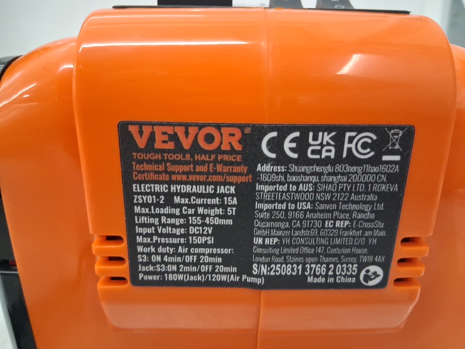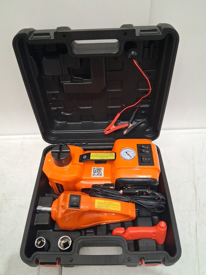 VEVOR 3-IN-1 5-TON ELECTRIC HYDRAULIC JACK WITH LED FLASHLIGHT & CARRY CASE , 150PSI MAX, DC LIGHTER POWERED CAR JACK, 12V SCISSOR JACK - ORANGE (MODEL: ZSY01-2)