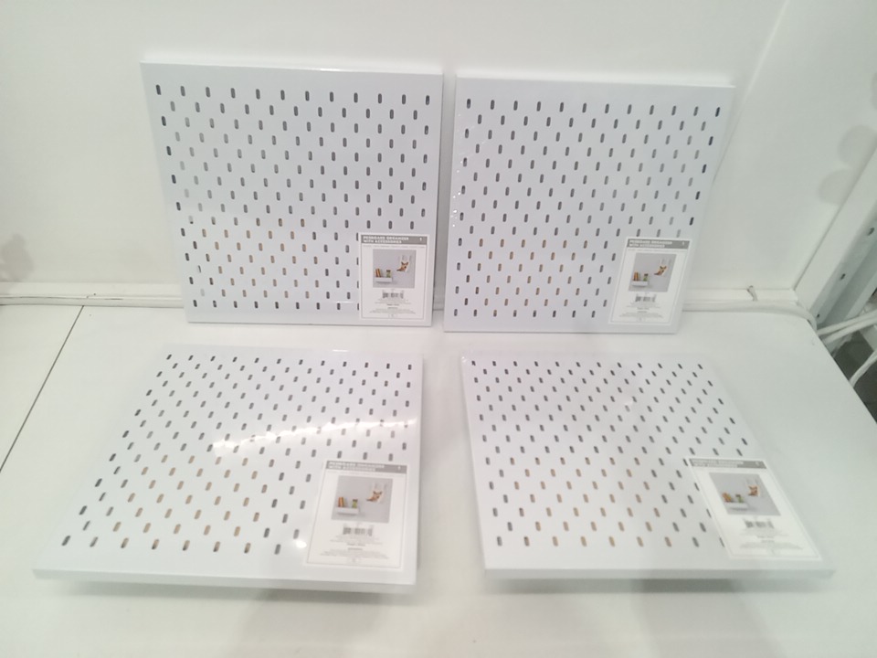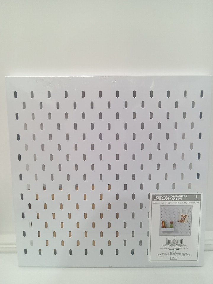 4 SMALL WALL-MOUNT PEGBOARD ORGANIZER WITH ACCESSORIES - 11.75" - White