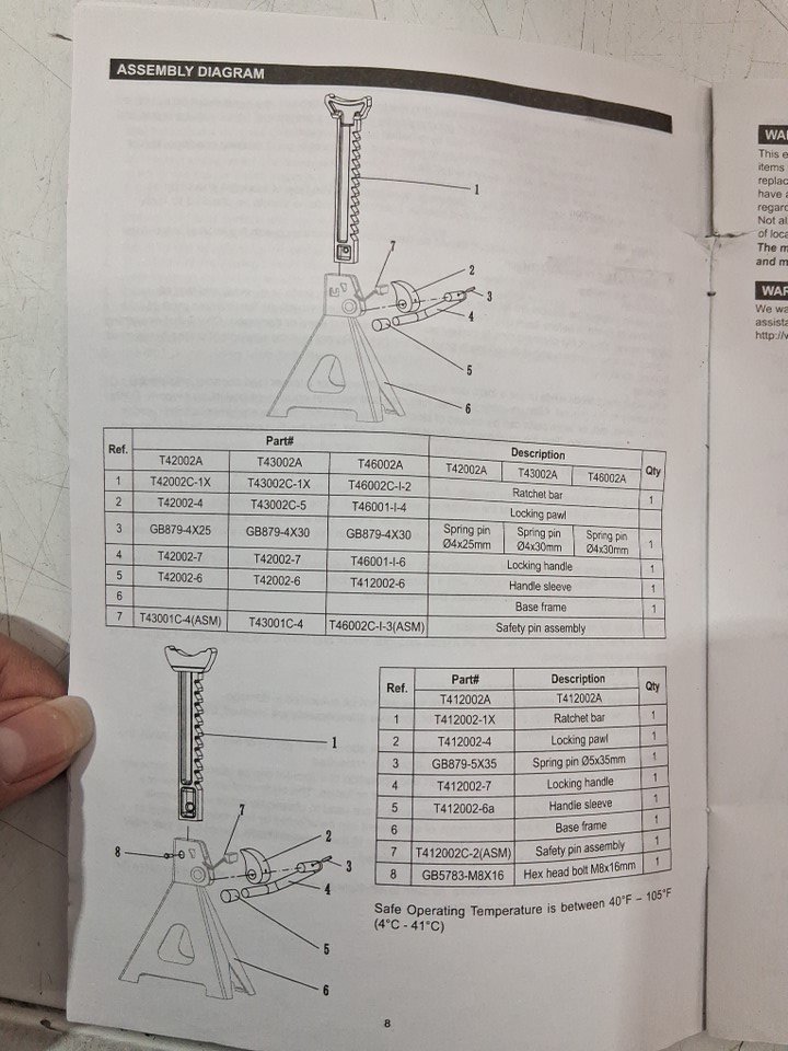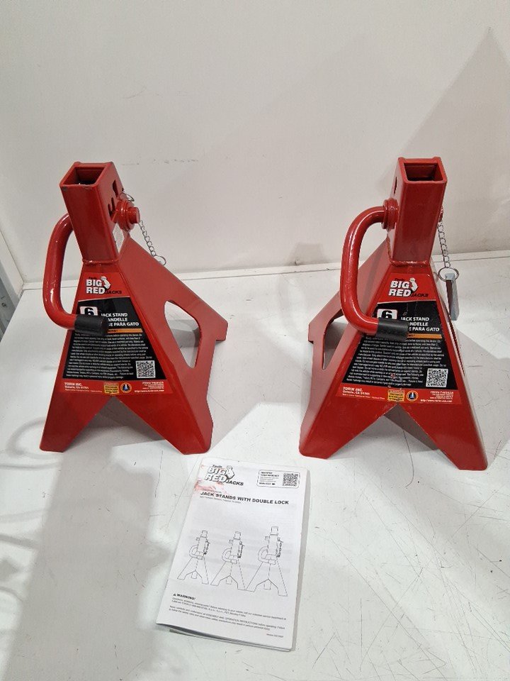 2PK TORIN BIG RED STEEL JACK STANDS / DOUBLE LOCKING and ADJUSTABLE HEIGHT - 6 TON - 15-3/8"- 23-13/16" - RED/BLACK (MODEL: T46002A)