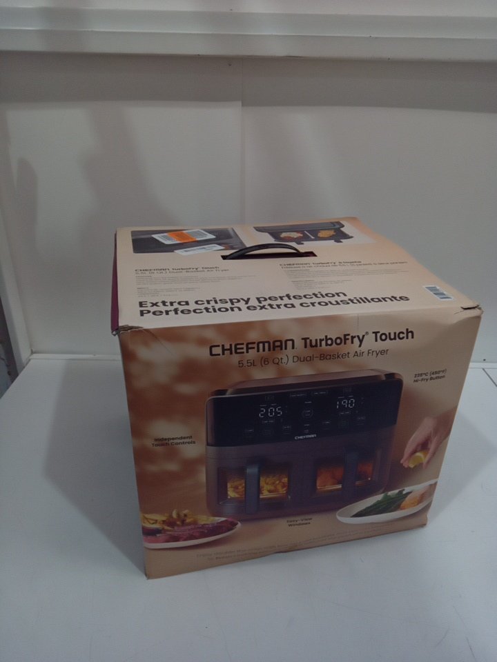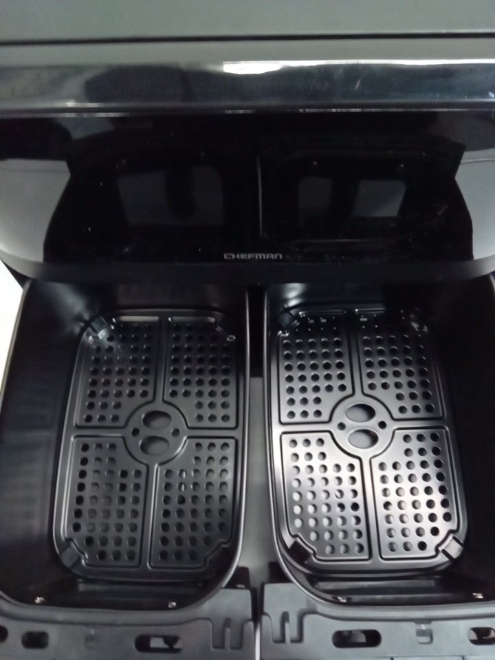 Chefman Dual Basket Air Fryer Digital Touchscreen Smart Sync Finish Hi-Fry Auto Shutoff - 3QT Baskets - BLACK (MODEL: rj38-sqpf-3tdb-2w-ca)