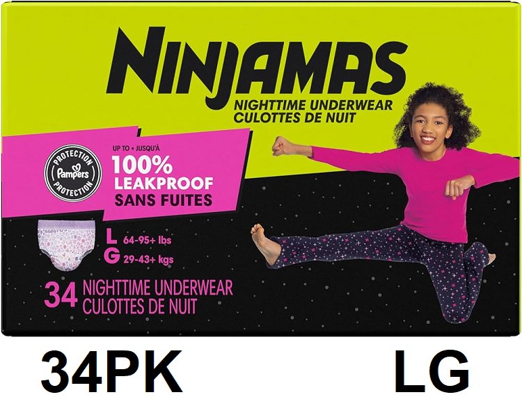 34PK GIRL'S NINJAMAS NIGHTTIME UNDERWEAR WITH ODORMASK & ALL-NIGHT LEAK PROTECTION - LARGE (64-95LBS)