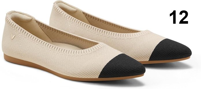 Women's VIVAIA Aria 5° Pointed Toe Ballet Flats - size 12 (44) - Almond & Black