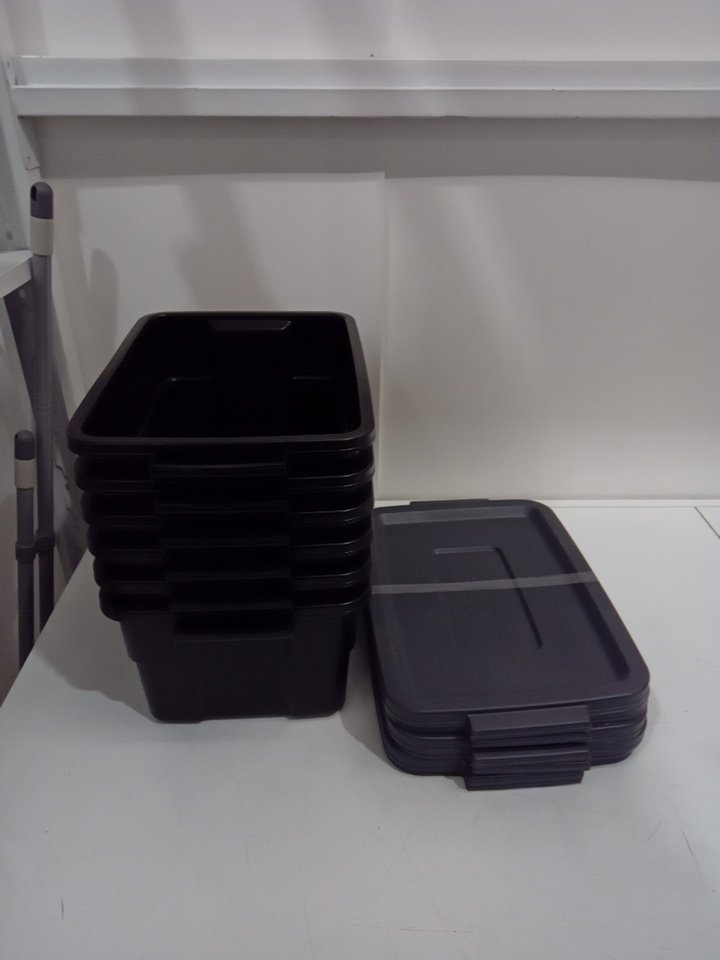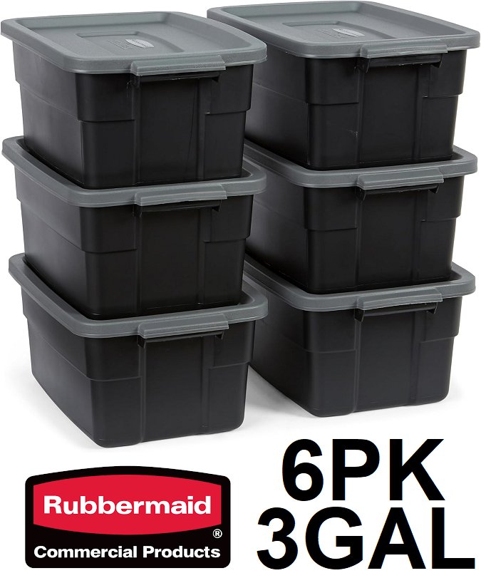6pk Rubbermaid Heavy Duty Durable Totes for Storage with Snap Lids - 3 gals - black/grey