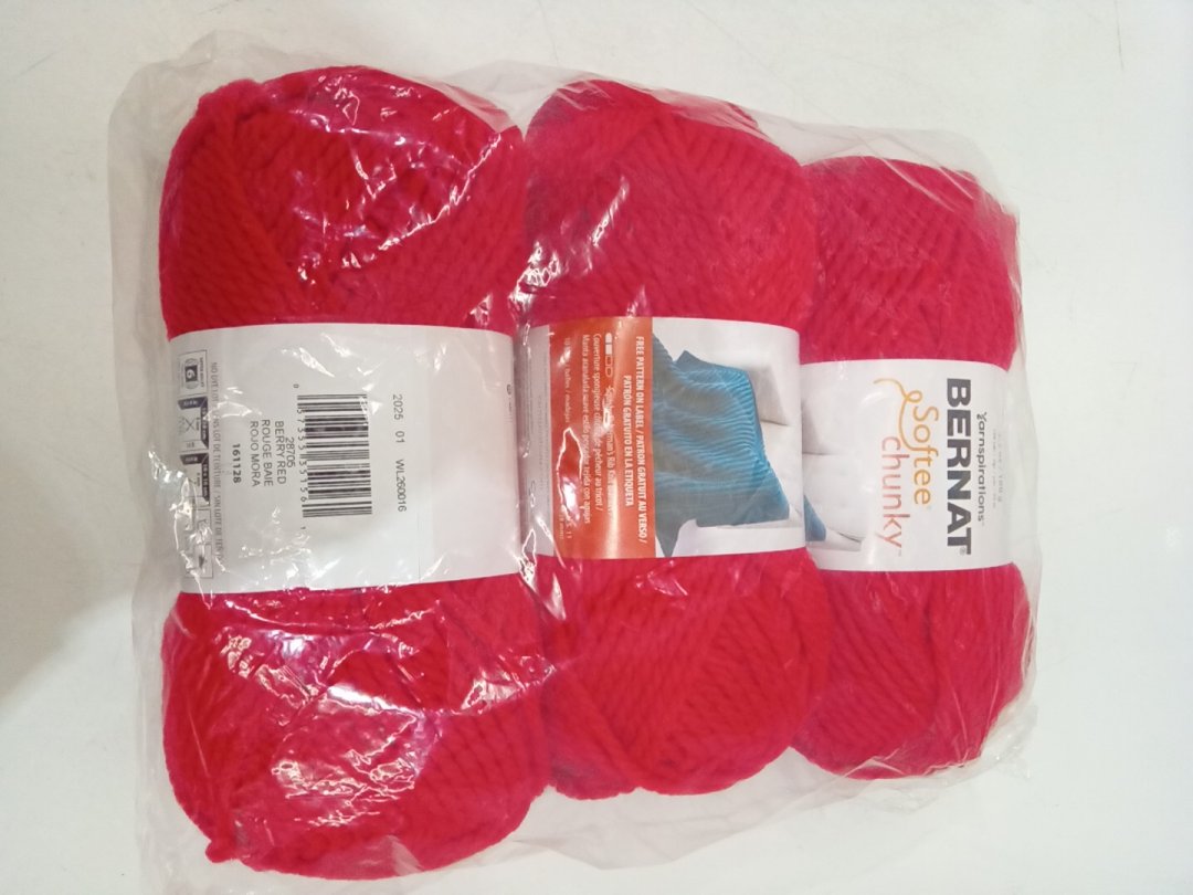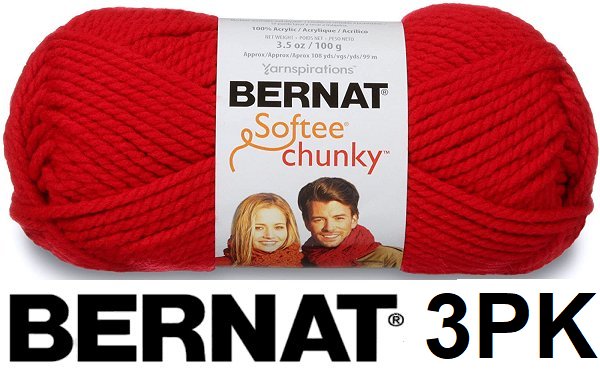 3PK BERNAT SOFTEE CHUNKY YARN - SUPER BULKY - SIZE 6 WEIGHT - BERRY RED