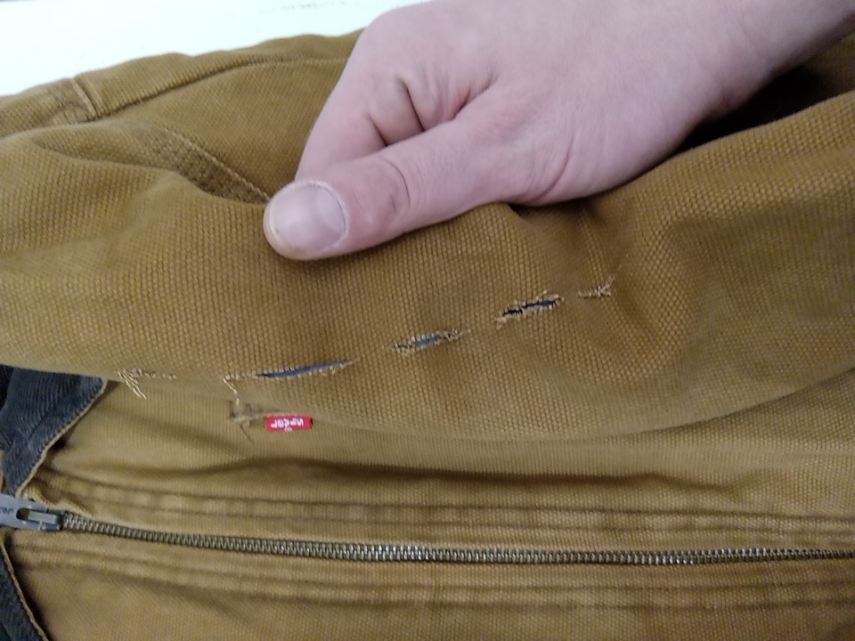 there are some light cut marks along the right arm of the jacket