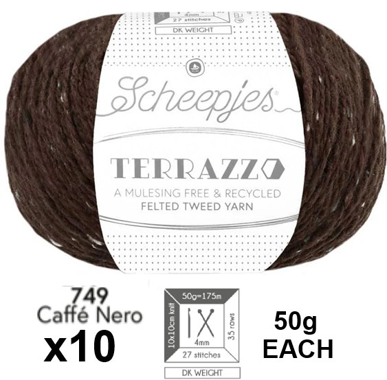 10 Scheepjes Terrazzo yarn skeins - 70% Recycled Mulesing Free Wool, 30% Recycled Viscose - 749 Caffe Nero