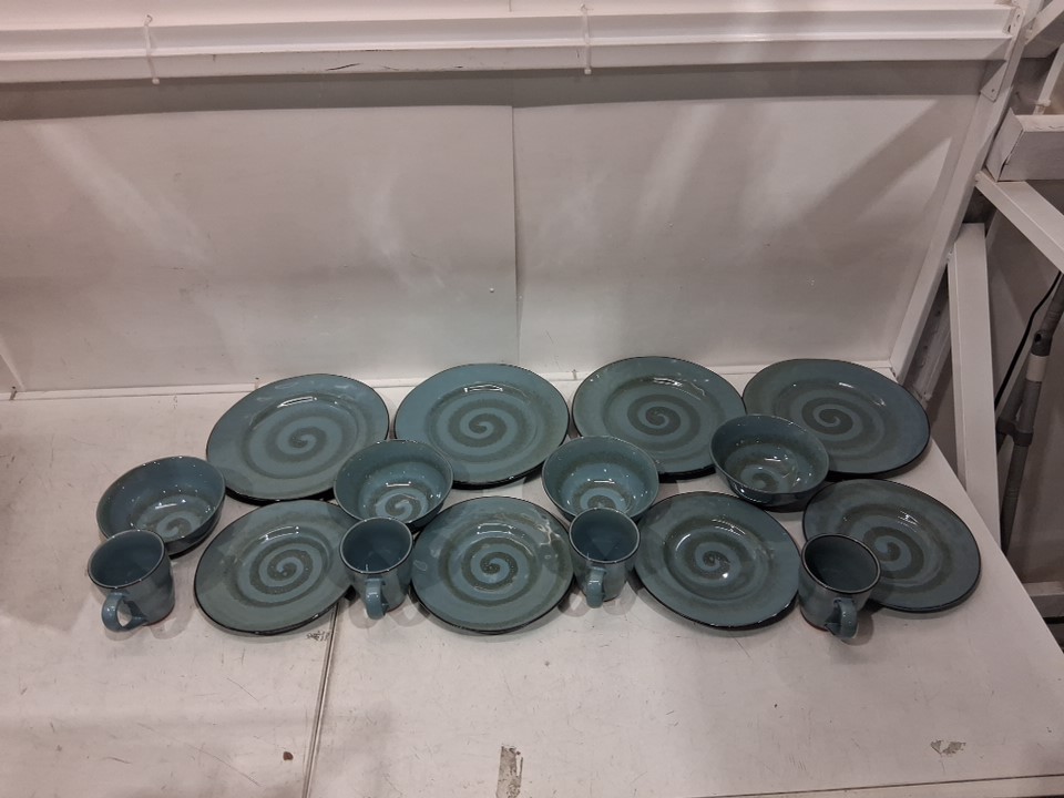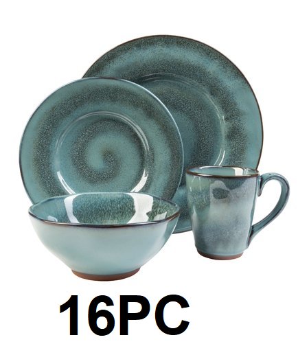 16pc Toren Casual Denim Stoneware Dinnerware Set - blue