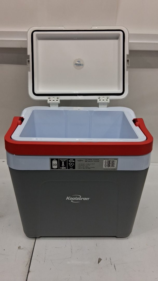Koolatron Ultra Kool Ice Chest Cooler with Carry Handle - 25 L/26qt Capacity - grey/red (MODEL: KIC-25)