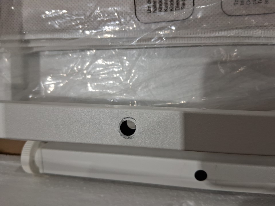 THE HOOK FOR HANGING THE HEADPHONES SEEMS TO BE MISSING AND SOME MARKS PRESENT INDICATING PRIOR ASSEMBLY, SEE PHOTOS.