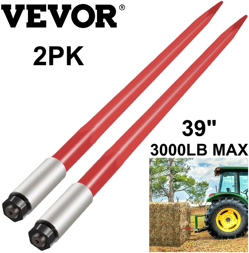 2PK VEVOR 1 3/4" Quick Attach Square Bucket Hay Bale Spears for Tractors - 39" - 3000 lb Max - Red (Model: 39-3000)