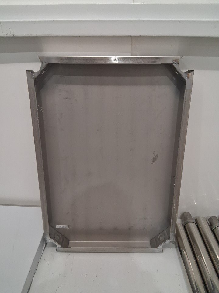 Table has some scuffing and residue on stainless steel from rubbing in packaging