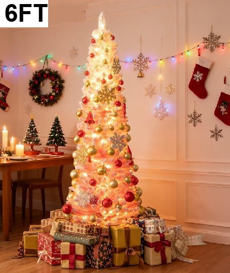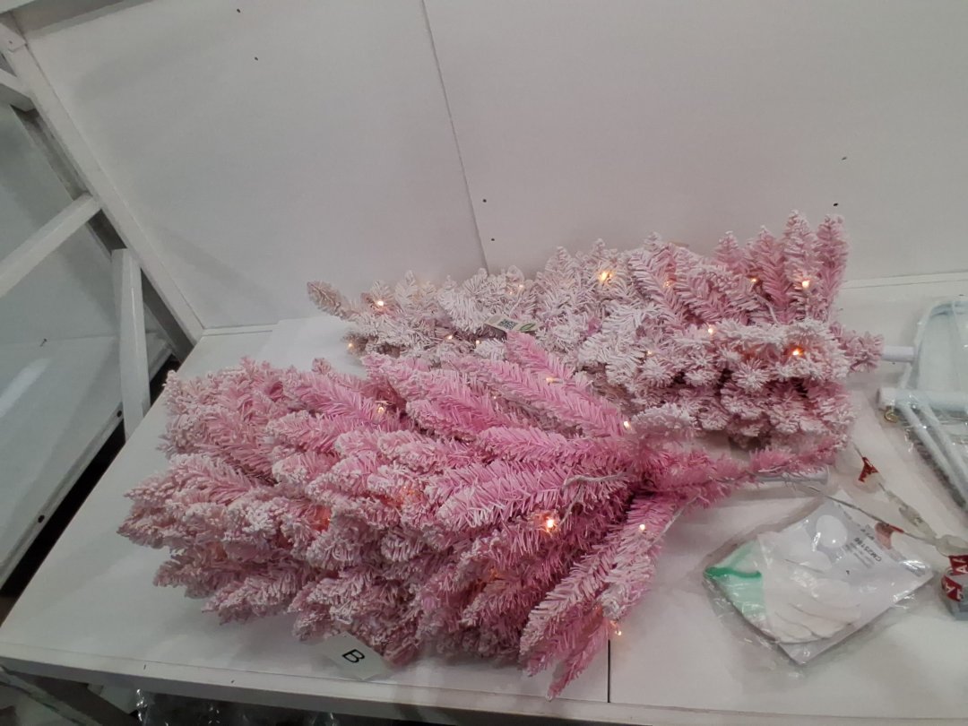 Costway Snow-Flocked Artificial Christmas Tree - 6FT - pink (model: CM25186US-6)