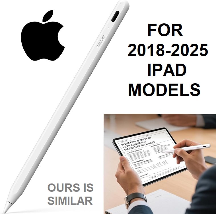 Metapen A8 Pencil Stylus for 2018-2025 iPad Models with Tilt Sensitivity, Palm Rejection, and Quick Button - white (model: ME-APP152)