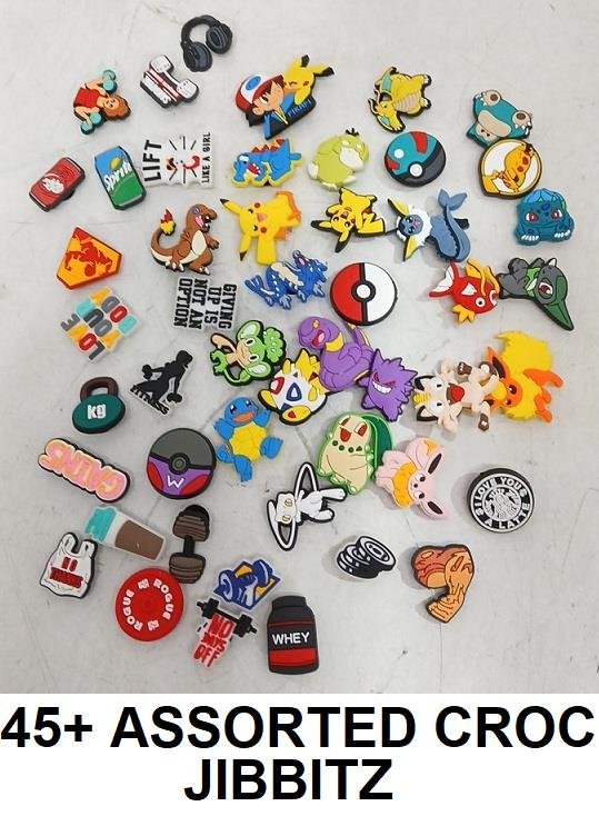 45+ ASSORTED CROC JIBBITZ - WORKOUT, POKEMON AND MORE