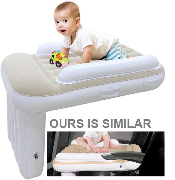 toddler airplane bed inflatable travel bed with pump - white/beige