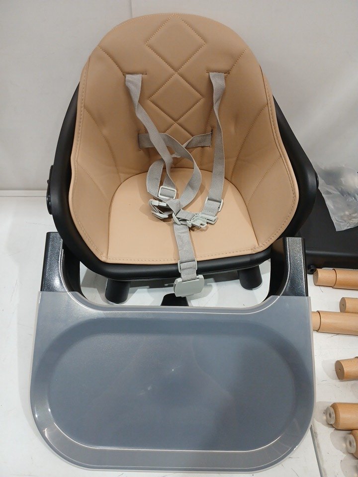 Komcot 6-in-1 baby highchair convertible booster seat with 5 point harness - beige/white/wood (model: mz502)