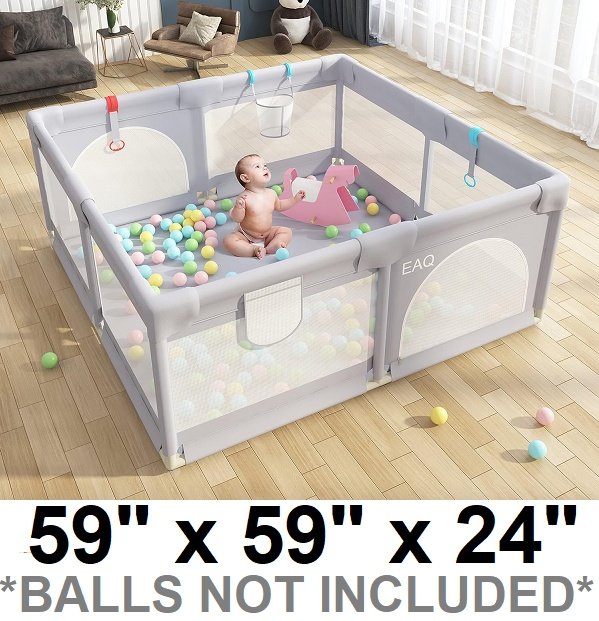 EAQ MESH SIDE BABY PLAYPEN FOR INDOOR/OUTDOOR - 59" x 59" x 24" - LARGE - GREY (MODEL: ST-915)