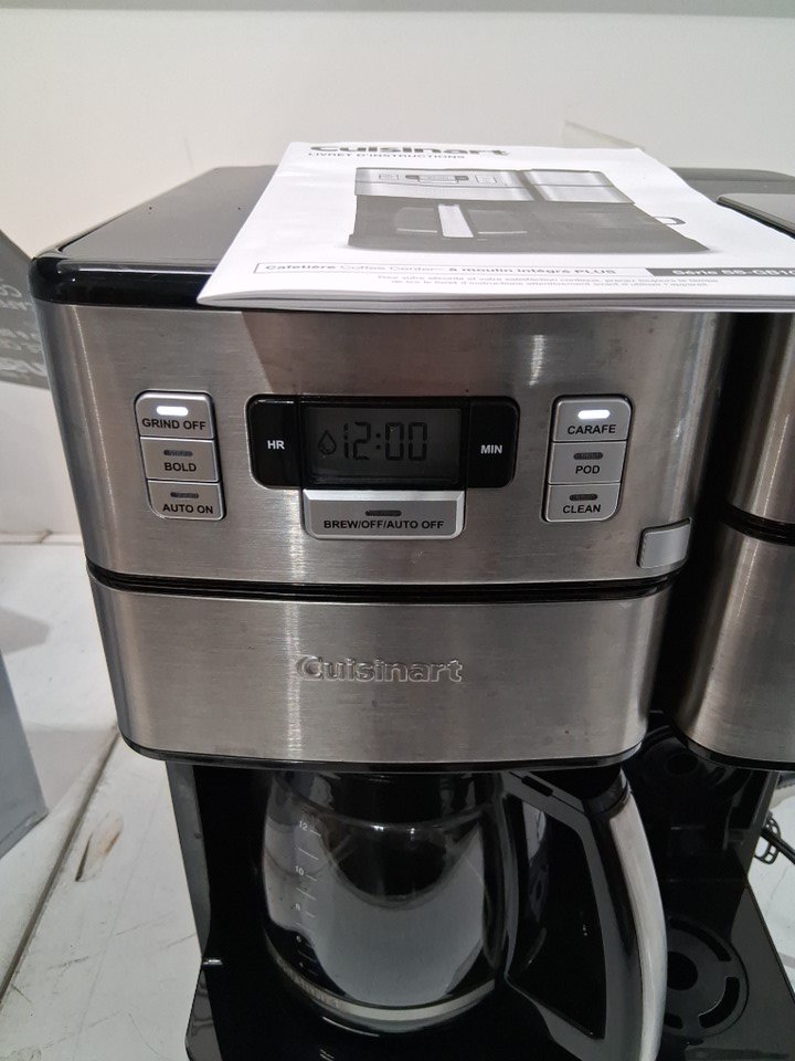 CUISINART COFFEE CENTER GRIND and BREW PLUS drip and single serve COFFEE MAKER with built-in grinder - 12 CUP glass CARAFE - STAINLESS STEEL/BLACK (MODEL: SS-GB1C)