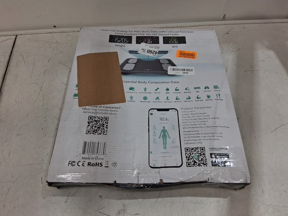 Runstar Voice Prompt bluetooth enabled digital Scale for Body Weight, Fat and bmi - black (model: fg2211lb)