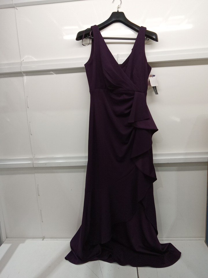 womens betsy adam Candace Long V-Neck Hi Low Cascade Dress - 10 - mulberry (style: A24829)