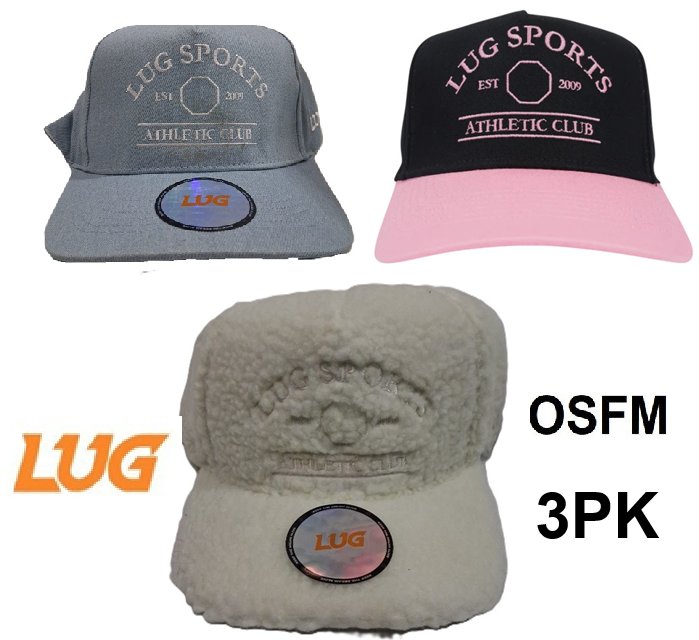 3PK unisex adult LUG Shop ATHLETIC CLUB adjustable HAT - osfm - BLACK/PINK/BLUE/BIEGE