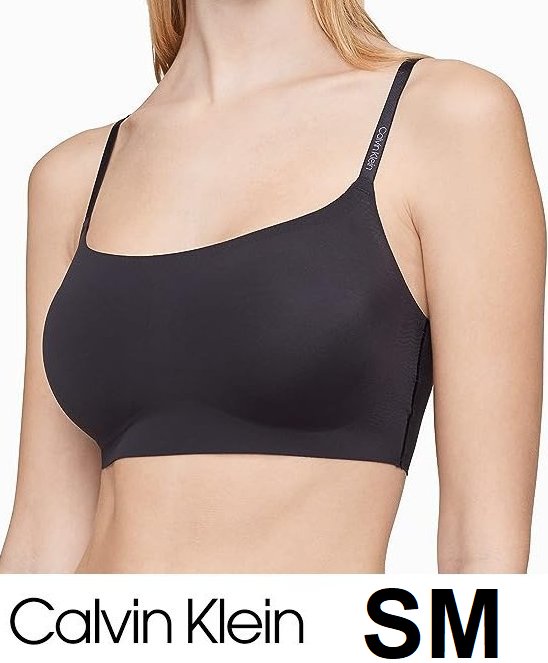 WOMEN'S CALVIN KLEIN INVISIBLE COMFORT SEEMLESS SKINNY STRAP BRALETTE - small - BLACK (MODEL:QF4783)