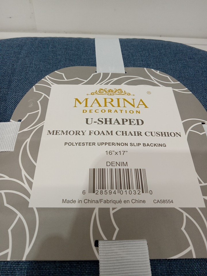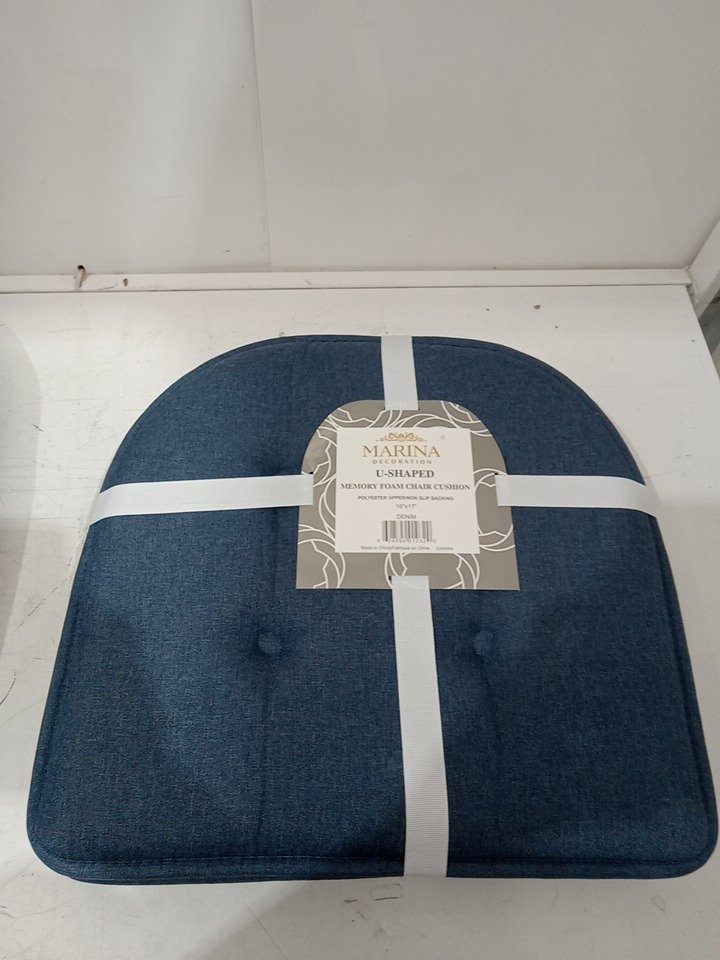MARINA DECORATION PREMIUM THICK "U-SHAPED" MEMORY FOAM CHAIR PADS - 16'' X 17'' - DENIUM BLUE
