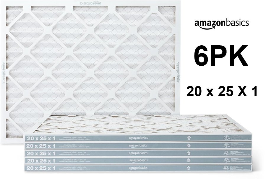 6PK amazon basics merv 5 ac furnace air filters - 20" x 25" x 1" - white