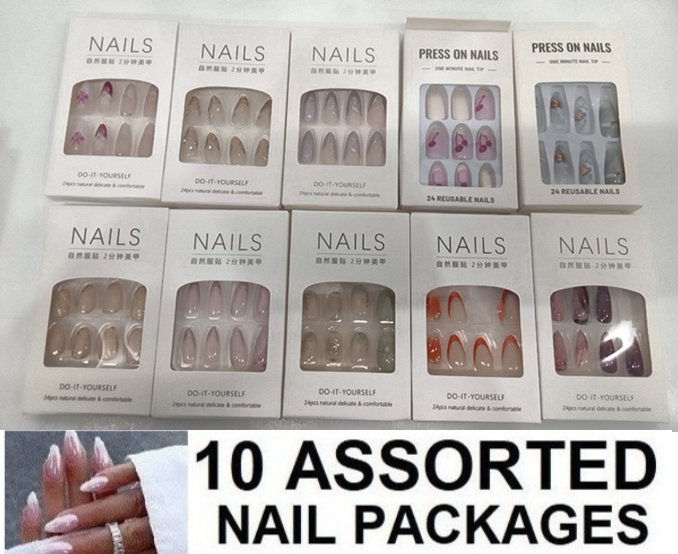 10 assorted nail packages - assorted lengths, colours & styles