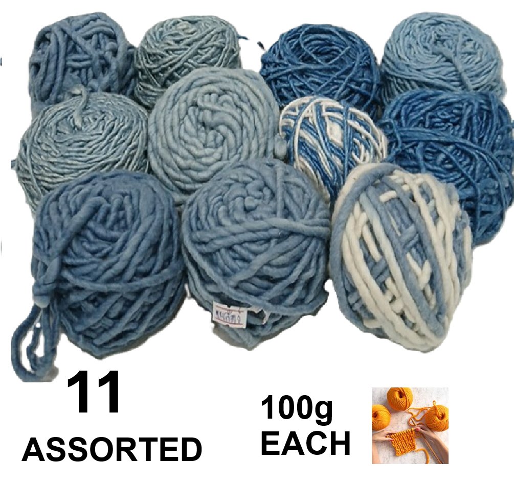 11 haND DYED HAND SPUN Worsted Weight Yarn - APPROX 100G SKEINS - APPROX 1100g TOTAL - BLUE MIXES