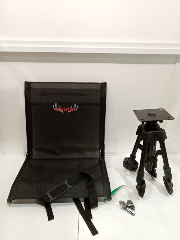 VEVOR 360° Silent Swivel Foldable Portable Outdoor Blind Chair with Seat Cover and Anti-Sink Feet- 350 LB Max - Black (Model: XW-HC-04AB)