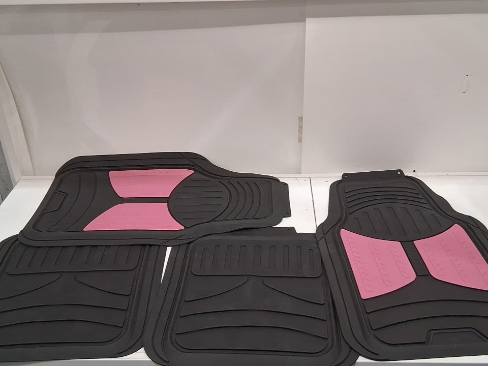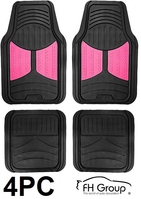 FH GROUP MONSTER EYE FULL SET RUBBER FLOOR MATS, UNIVERSAL FIT FOR MOST CAR/TRUCK/SUV/VAN - BLACK/RED (MODEL: F11313PINK)