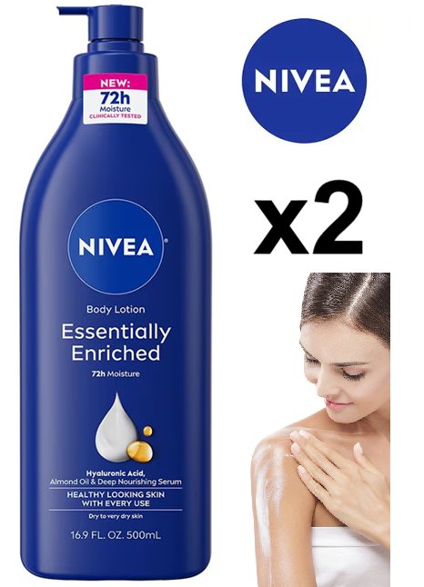 2 nivea essentially enriched 72hr moisture body lotion - 500ml/each