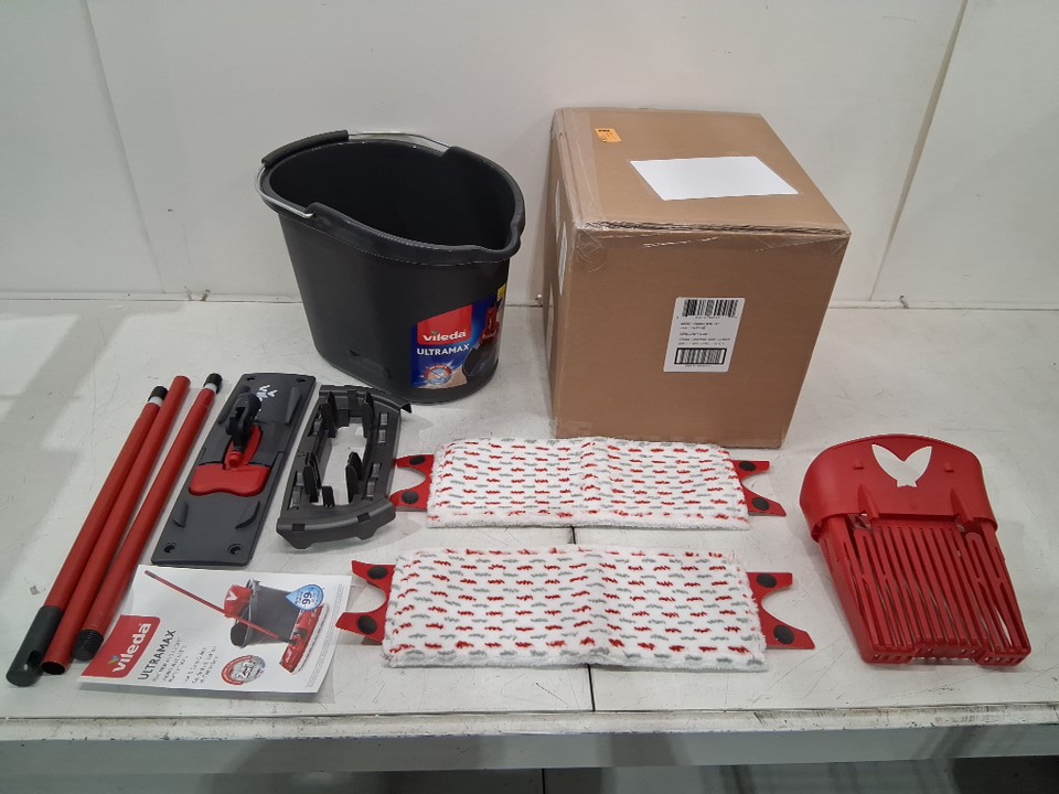 VILEDA ULTRAMAX FLAT MOP and BUCKET SYSTEM with 1 extra refill - 10L - RED/BLACK (MODEL: 161556)