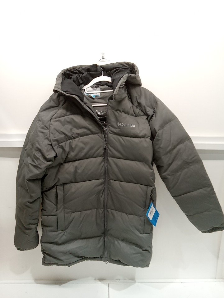 MEN'S COLUMBIA MACLEAY DOWN INSULATED FULL ZIP HOODED WINTER JACKET - MEDIUM - grey (model: wm1492)