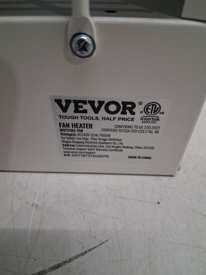 VEVOR Electric Fan Forced Mountable Garage Shop Heater with Remote Control, Overheat Protection and 9-Hour Timer - 7500W - COVERS 732 SQ.FT - WHITE - (MODEL: BGP2102-75R)