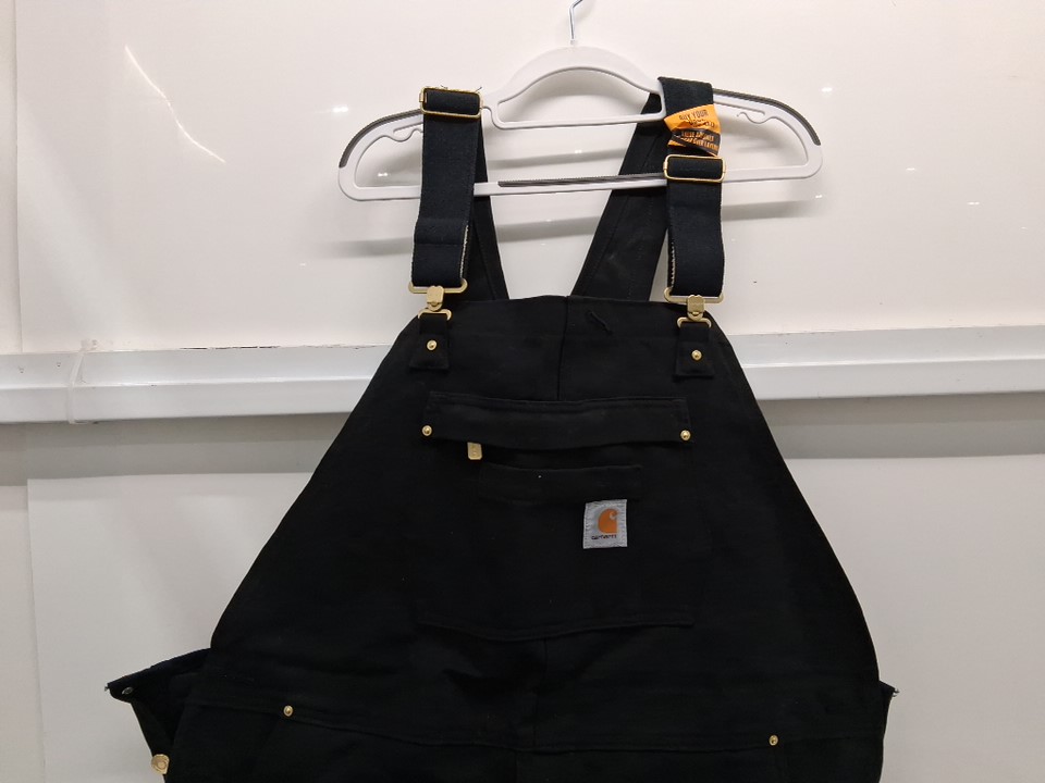 Tags still attached, and lint or debris comes from being stored in warehouse conditions.