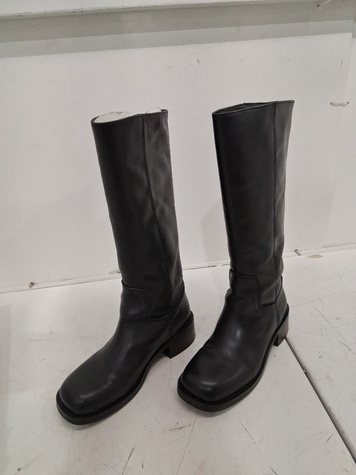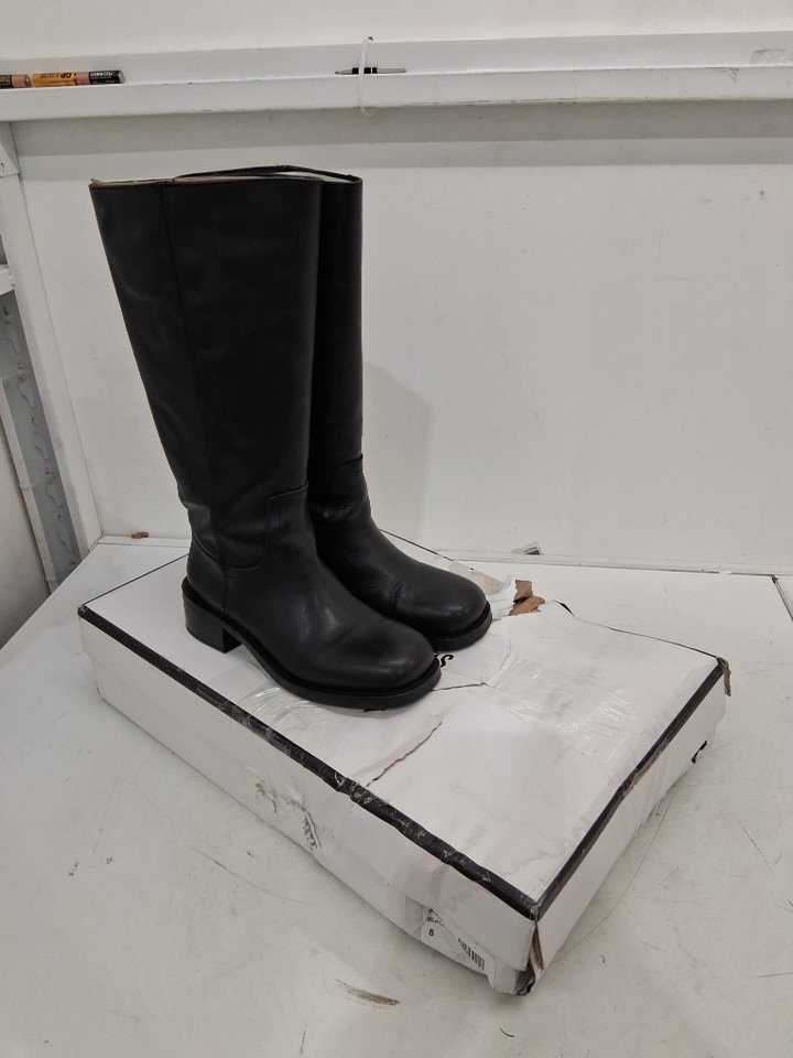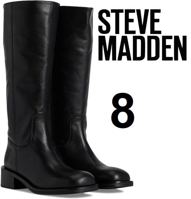 WOMENS STEVE MADDEN RIGGS KNEE HIGH LEATHER BOOT - SIZE 8 - BLACK (STYLE: RIGG03S1)