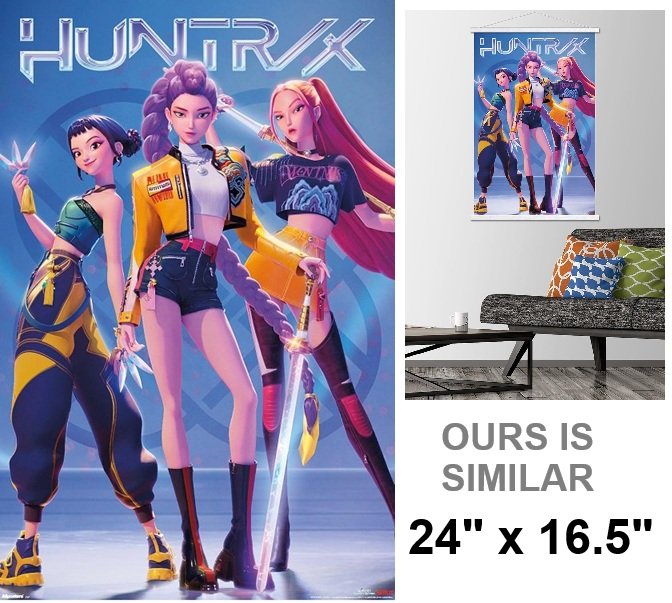 Netflix KPop Demon Hunters framed poster - Huntrix Hero Group Wall Poster - 24" x 16.5" - brown