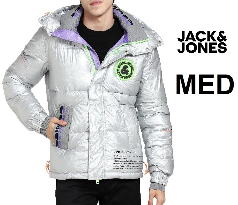 men's jack and jones regular fit hooded puffer jacket - medium - silver birch