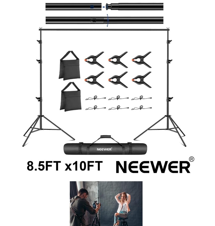 NEEWER Photography Background Support System with Crossbars Clamps Backdrop Clips - 8.5FT x10FT - black (model: ‎NK-ST2630)