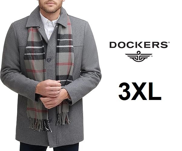 Men's Dockers Weston Wool Blend Coat with Scarf - 3XL - Grey/Black/Red (style: dm6tp357)