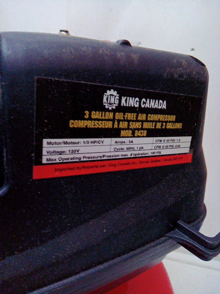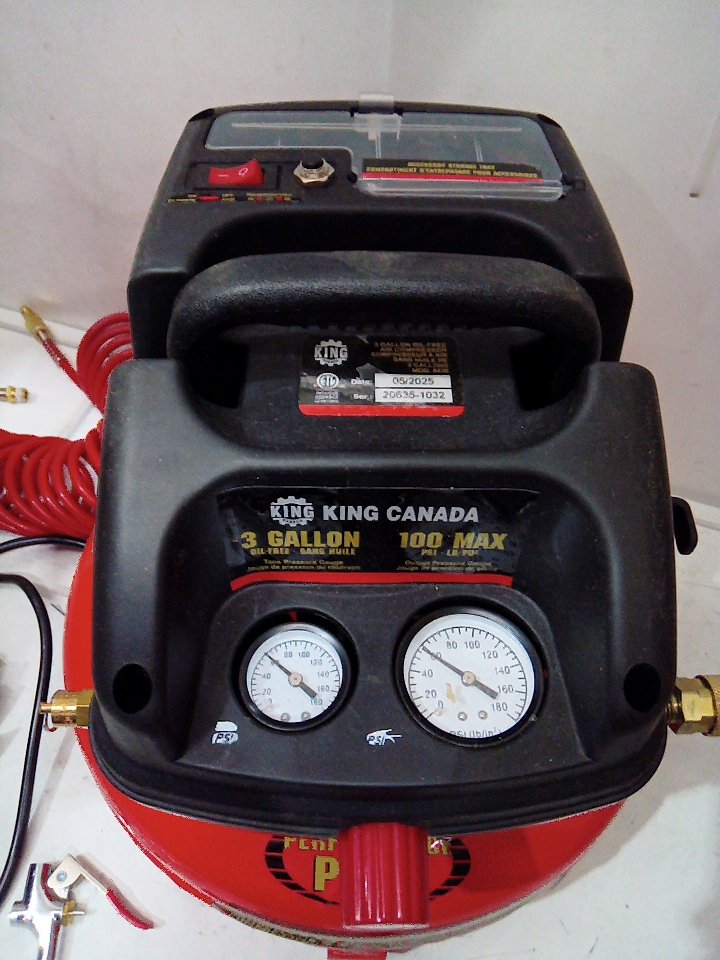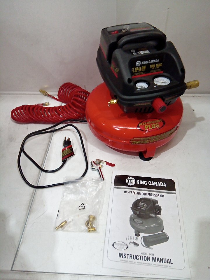 KING CANADA 3 GALLON OIL-FREE AIR COMPRESSOR KIT - 100psi - red (MODEL: 8438)