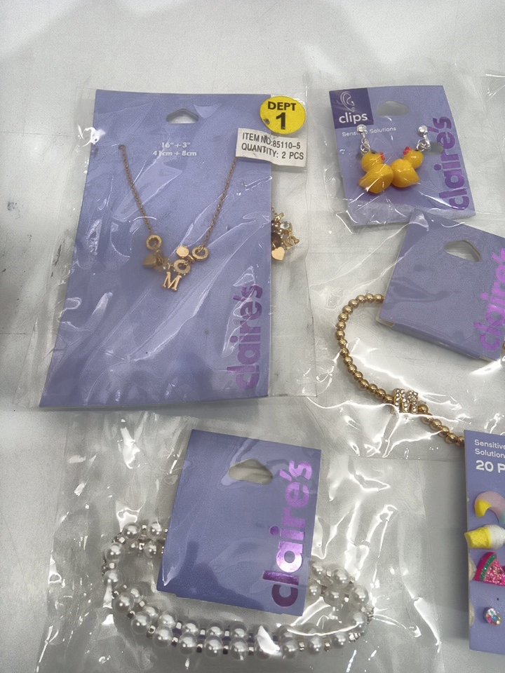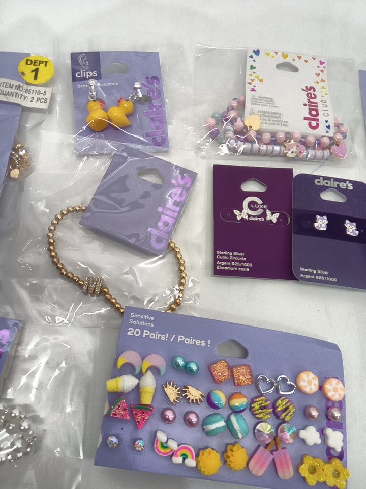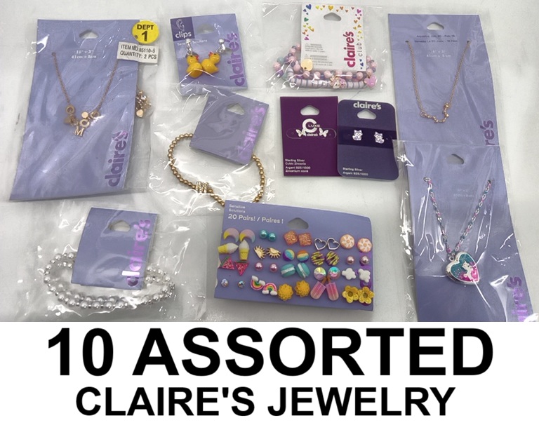 10 ASSORTED CLAIRE'S JEWELRY - BRACELETS/ EARRINGS /NECKLACES